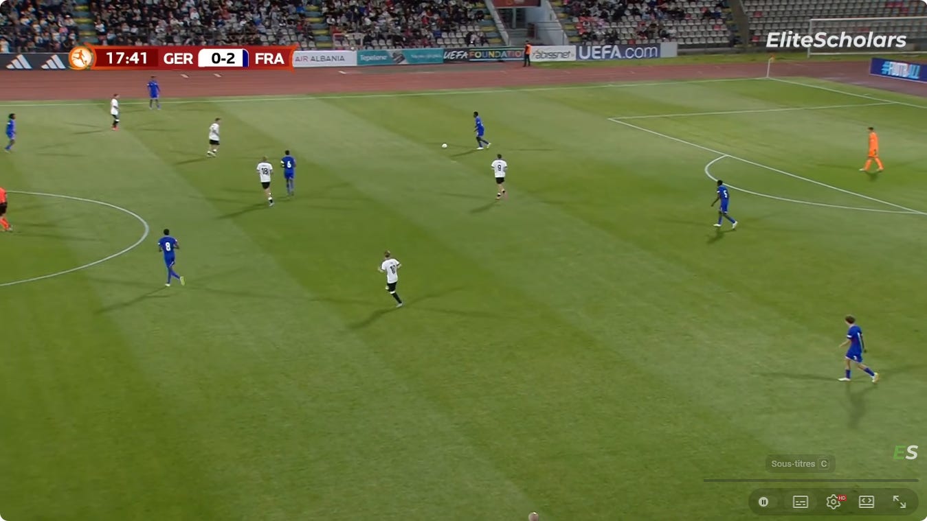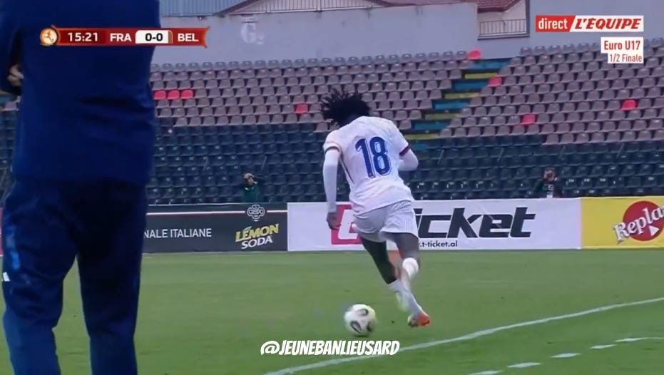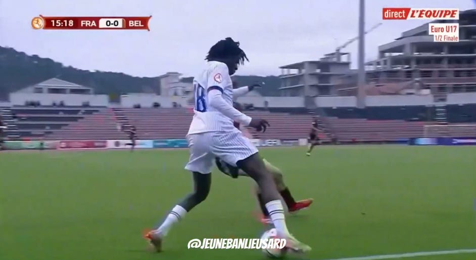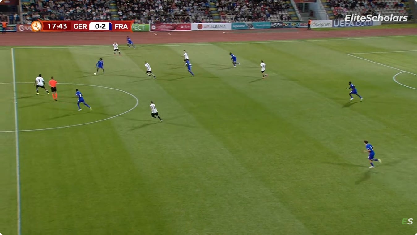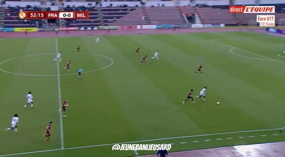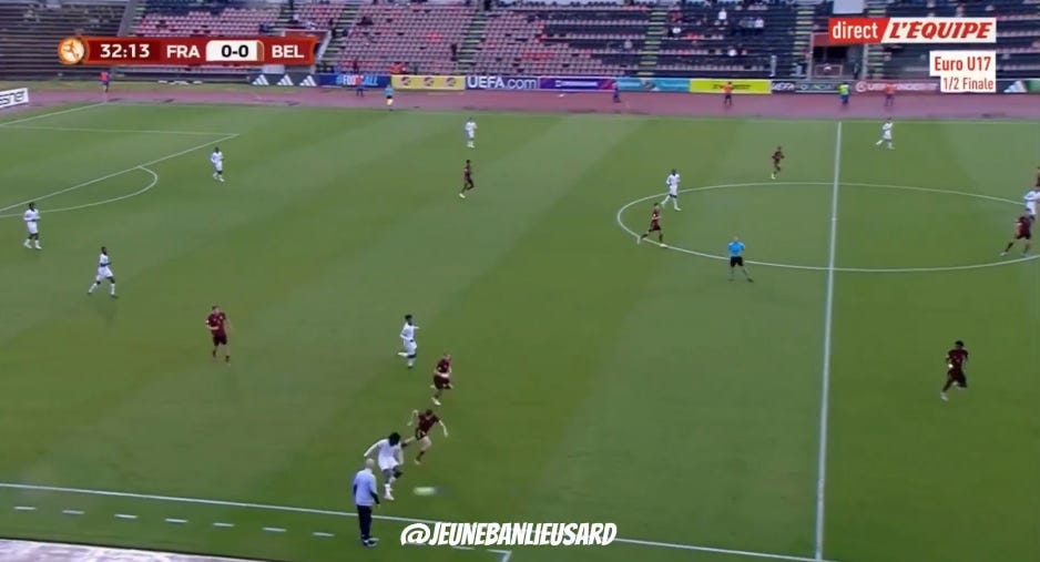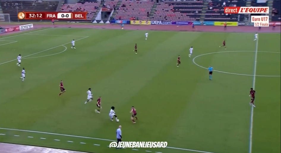 And flair French CMs can be absolutely non existent in duels, to an extent that English academies wouldn’t tolerate. As a result, an unbothered French midfield 3 (whatever the shape, they’ll go where they want - Le Fée, Caqueret, Andy Diouf, Bondo, Aouchiche, Agoume, Abline, Abdoullah Ba etc) can truly look absolute chaos especially on defensive transition.