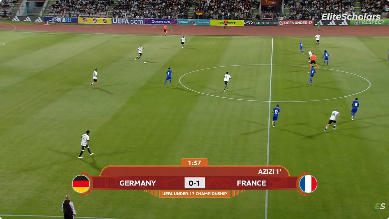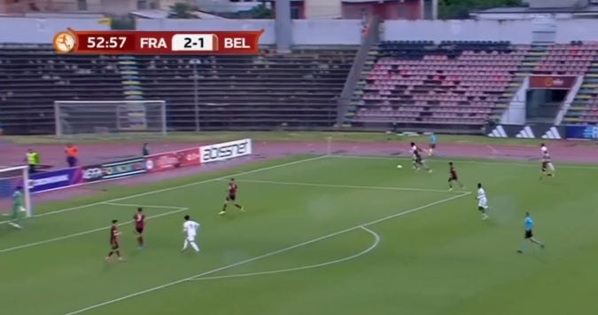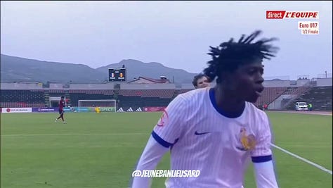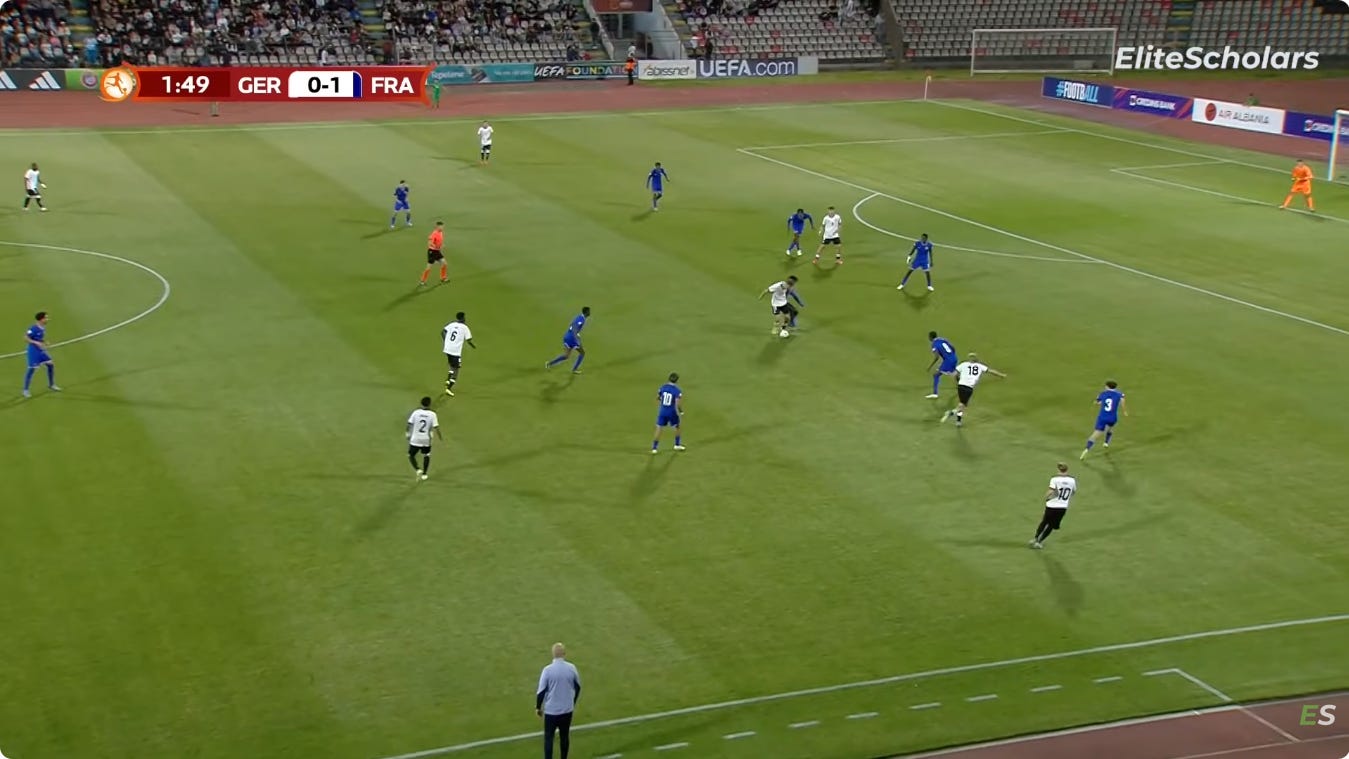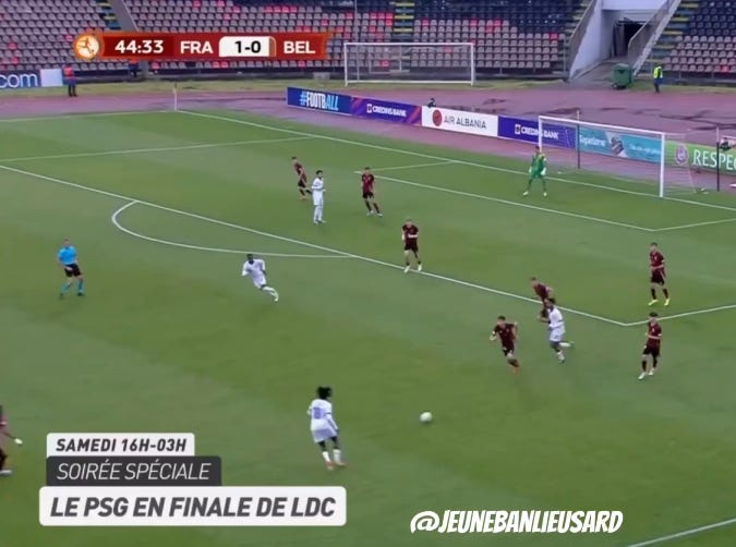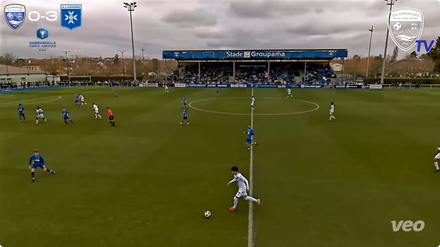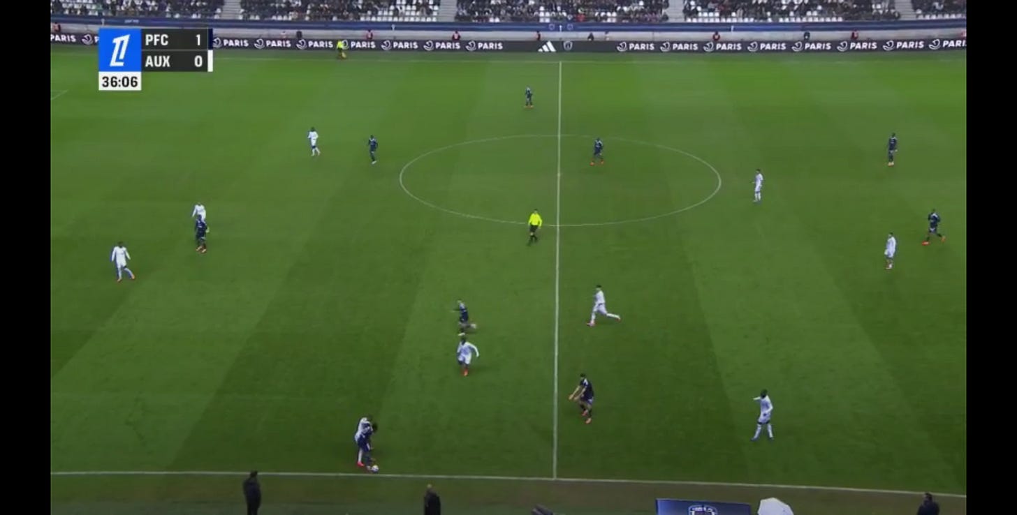 And flair French CMs can be absolutely non existent in duels, to an extent that English academies wouldn’t tolerate. As a result, an unbothered French midfield 3 (whatever the shape, they’ll go where they want - Le Fée, Caqueret, Andy Diouf, Bondo, Aouchiche, Agoume, Abline, Abdoullah Ba etc) can truly look absolute chaos especially on defensive transition.