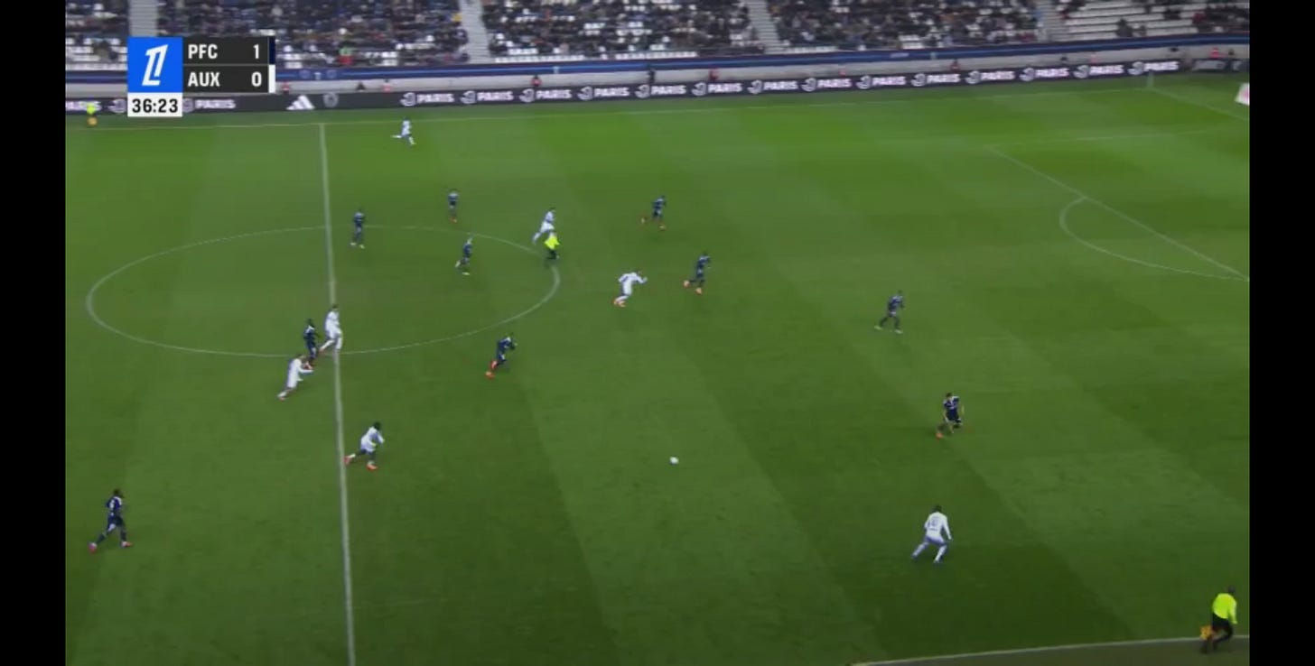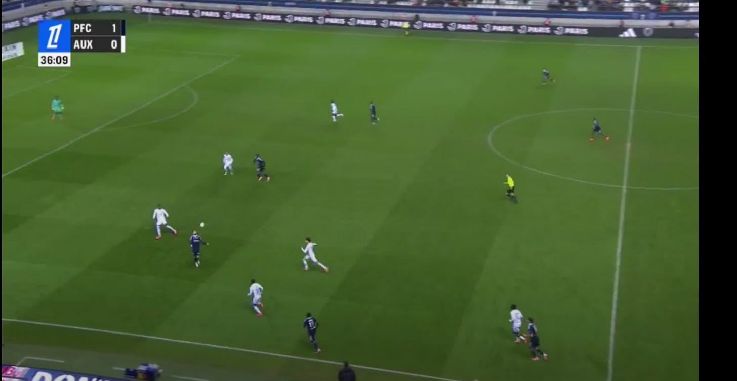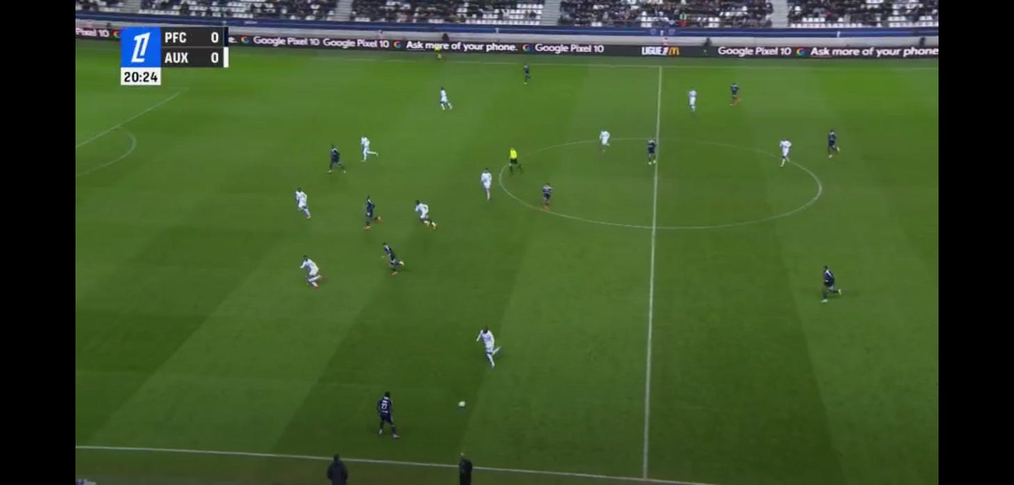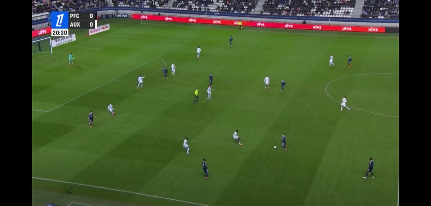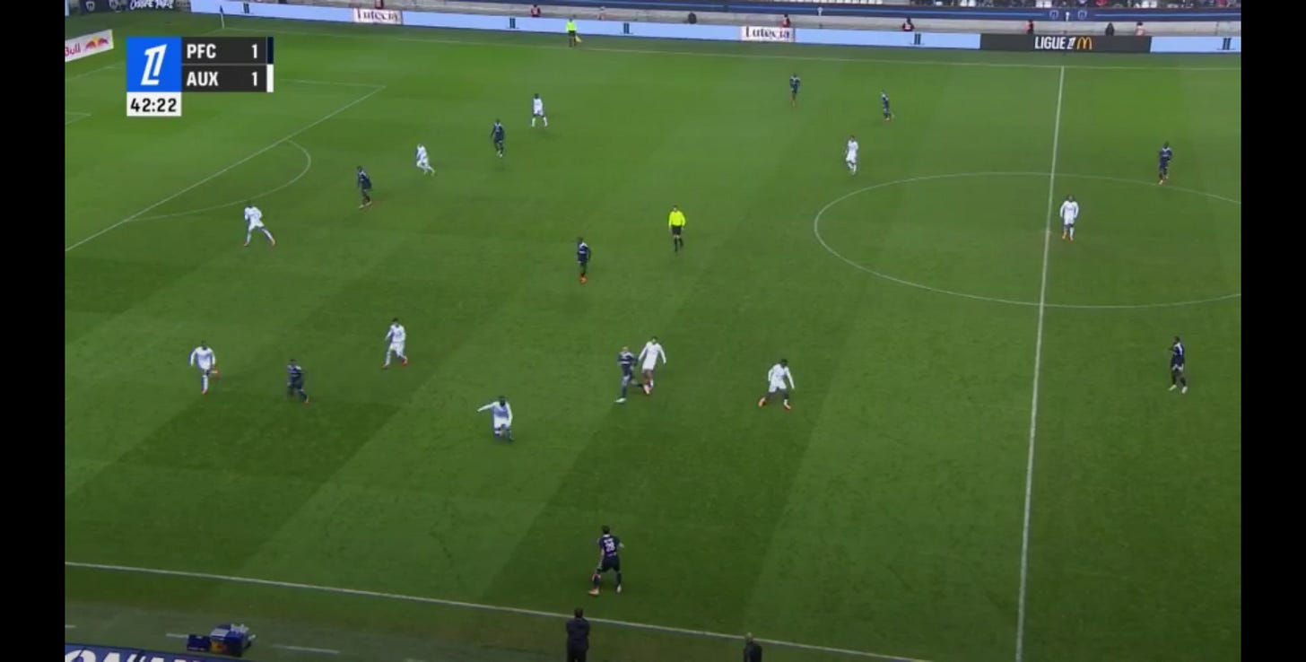 And flair French CMs can be absolutely non existent in duels, to an extent that English academies wouldn’t tolerate. As a result, an unbothered French midfield 3 (whatever the shape, they’ll go where they want - Le Fée, Caqueret, Andy Diouf, Bondo, Aouchiche, Agoume, Abline, Abdoullah Ba etc) can truly look absolute chaos especially on defensive transition.