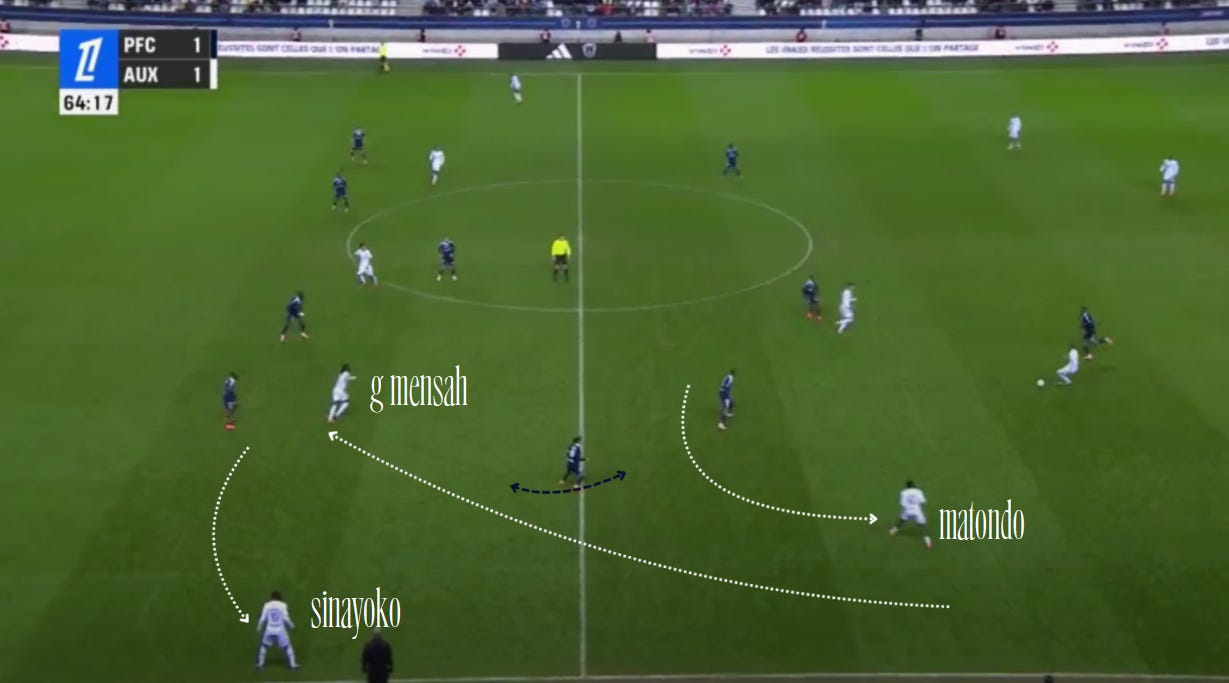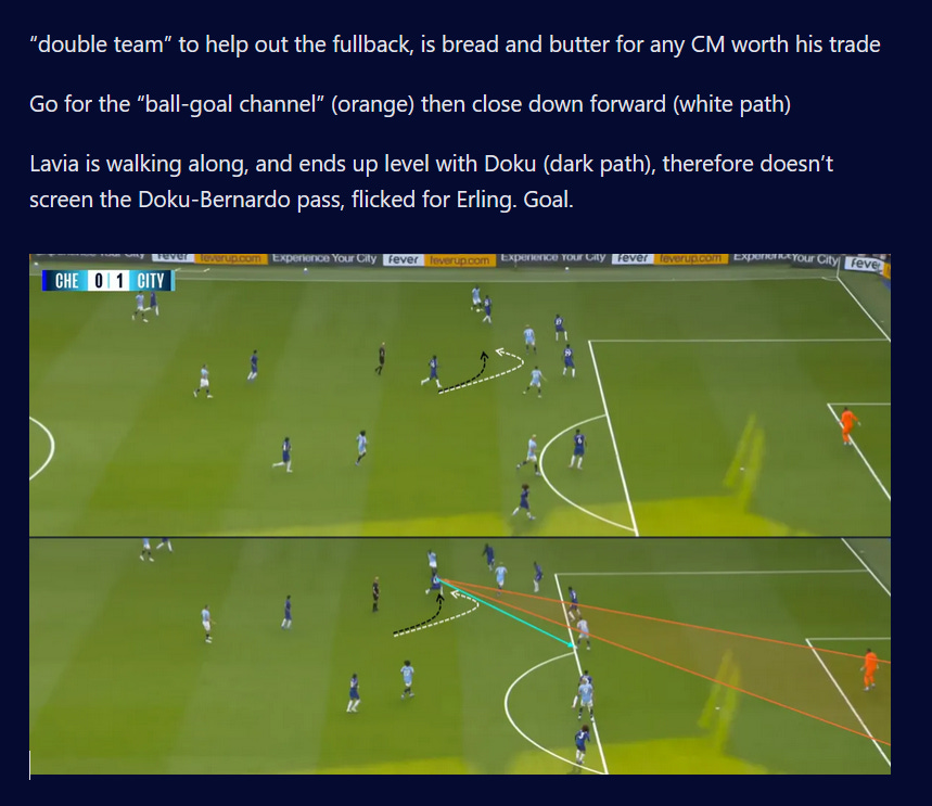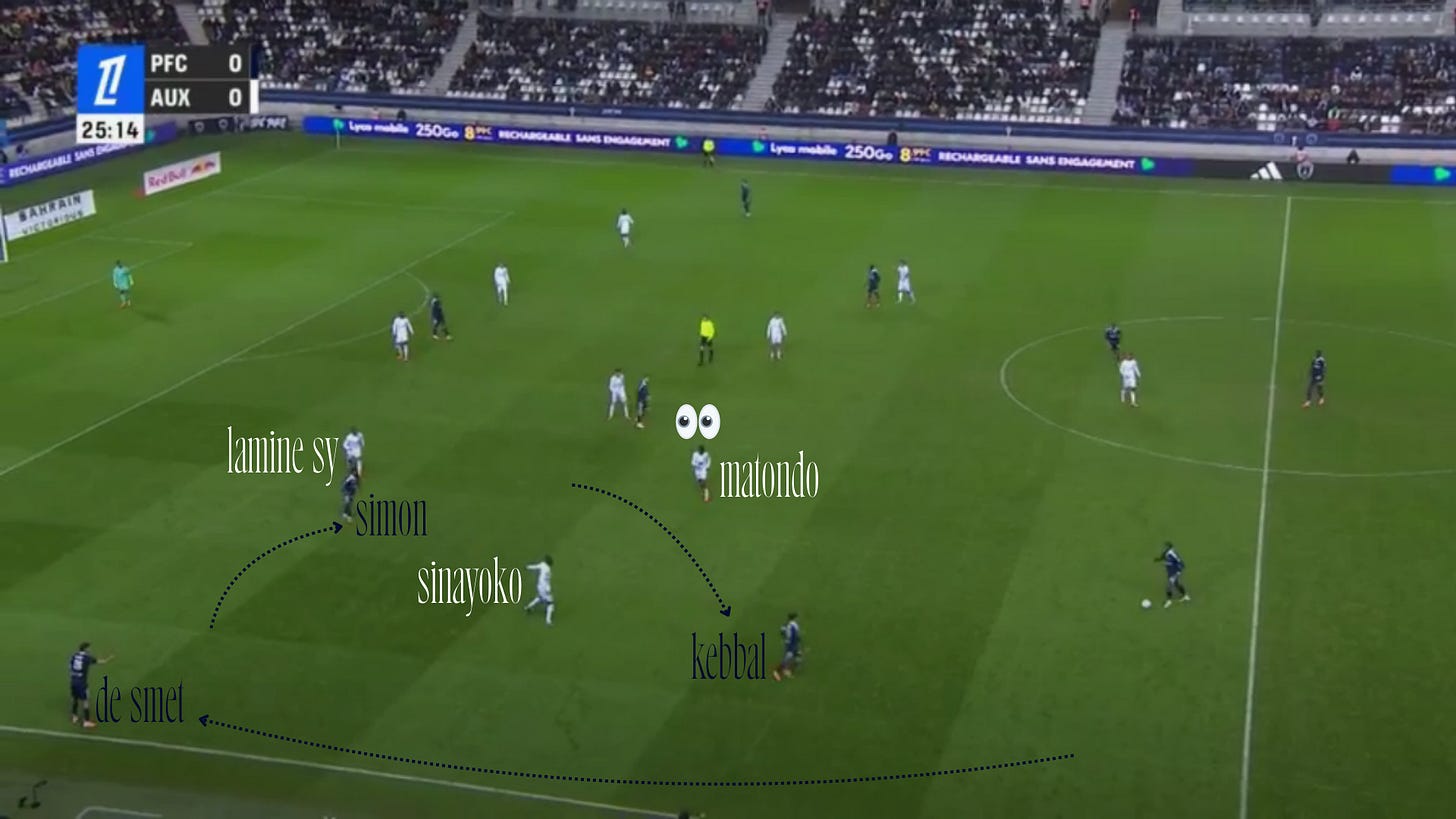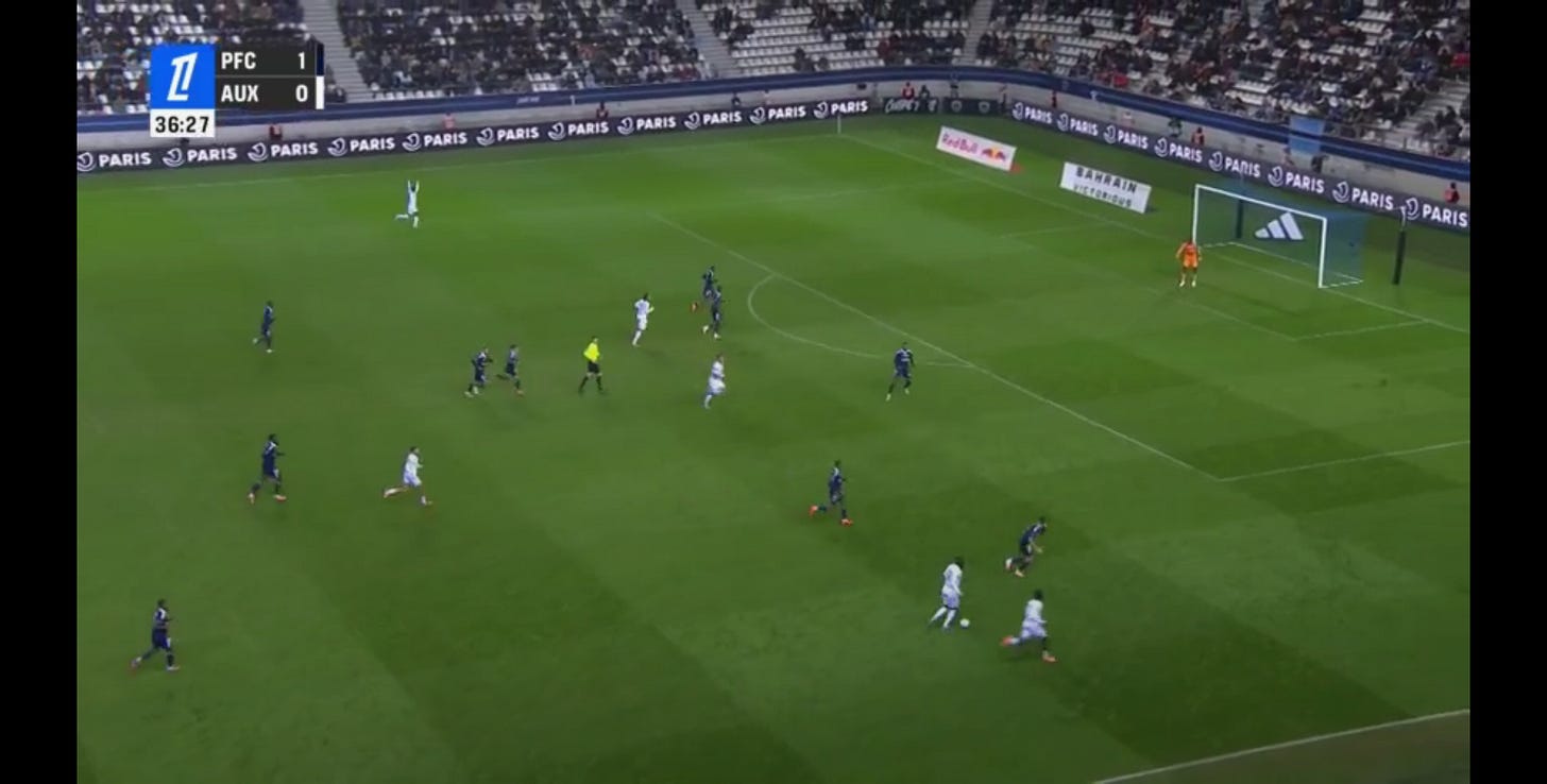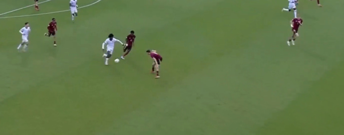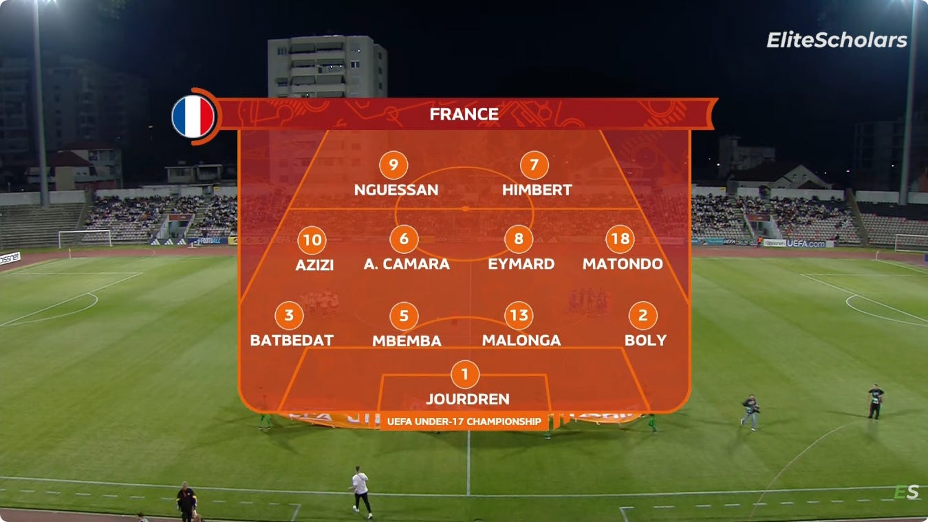 And flair French CMs can be absolutely non existent in duels, to an extent that English academies wouldn’t tolerate. As a result, an unbothered French midfield 3 (whatever the shape, they’ll go where they want - Le Fée, Caqueret, Andy Diouf, Bondo, Aouchiche, Agoume, Abline, Abdoullah Ba etc) can truly look absolute chaos especially on defensive transition.