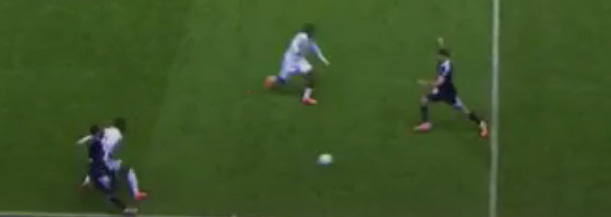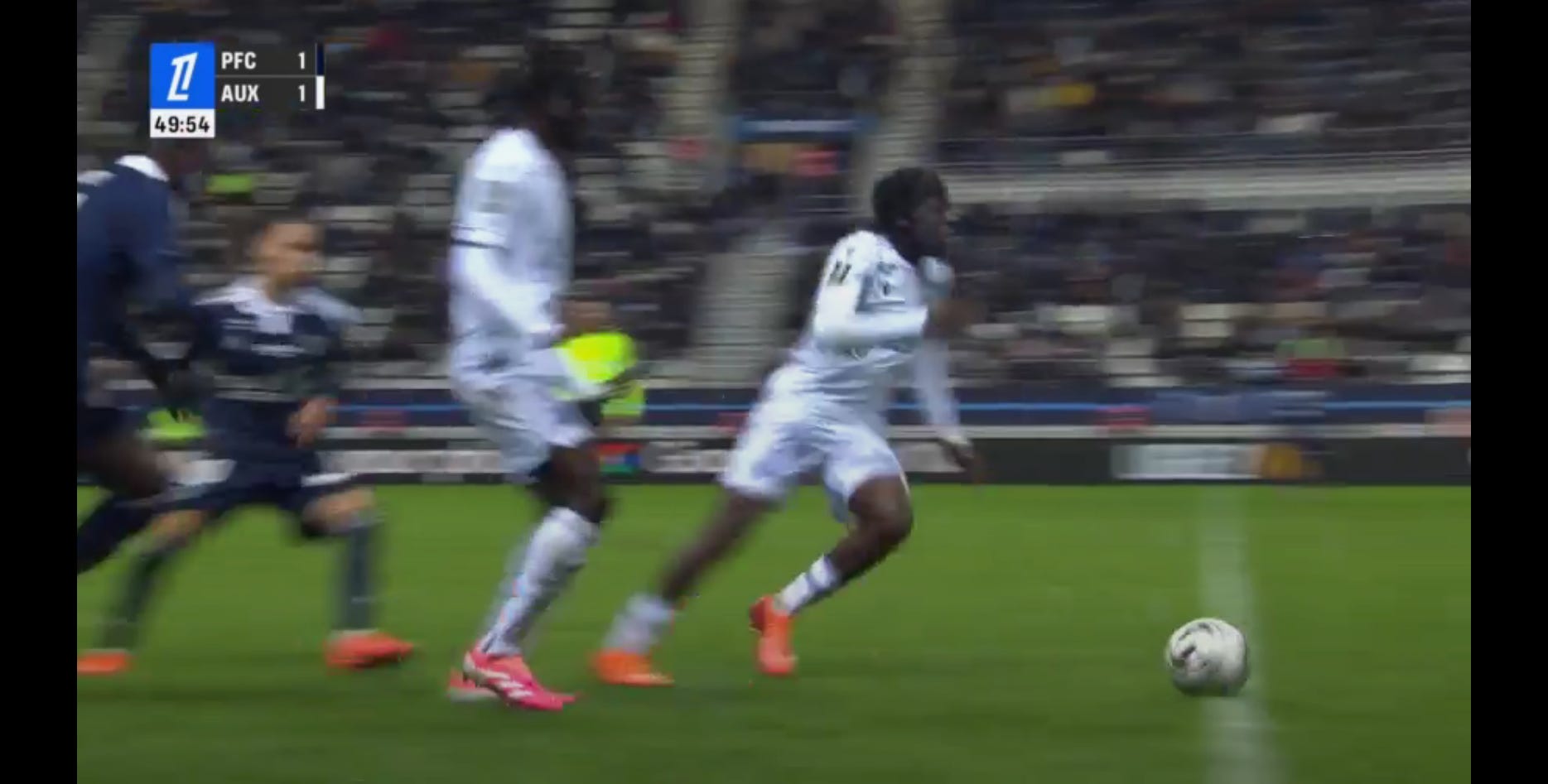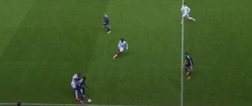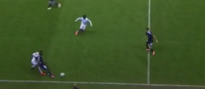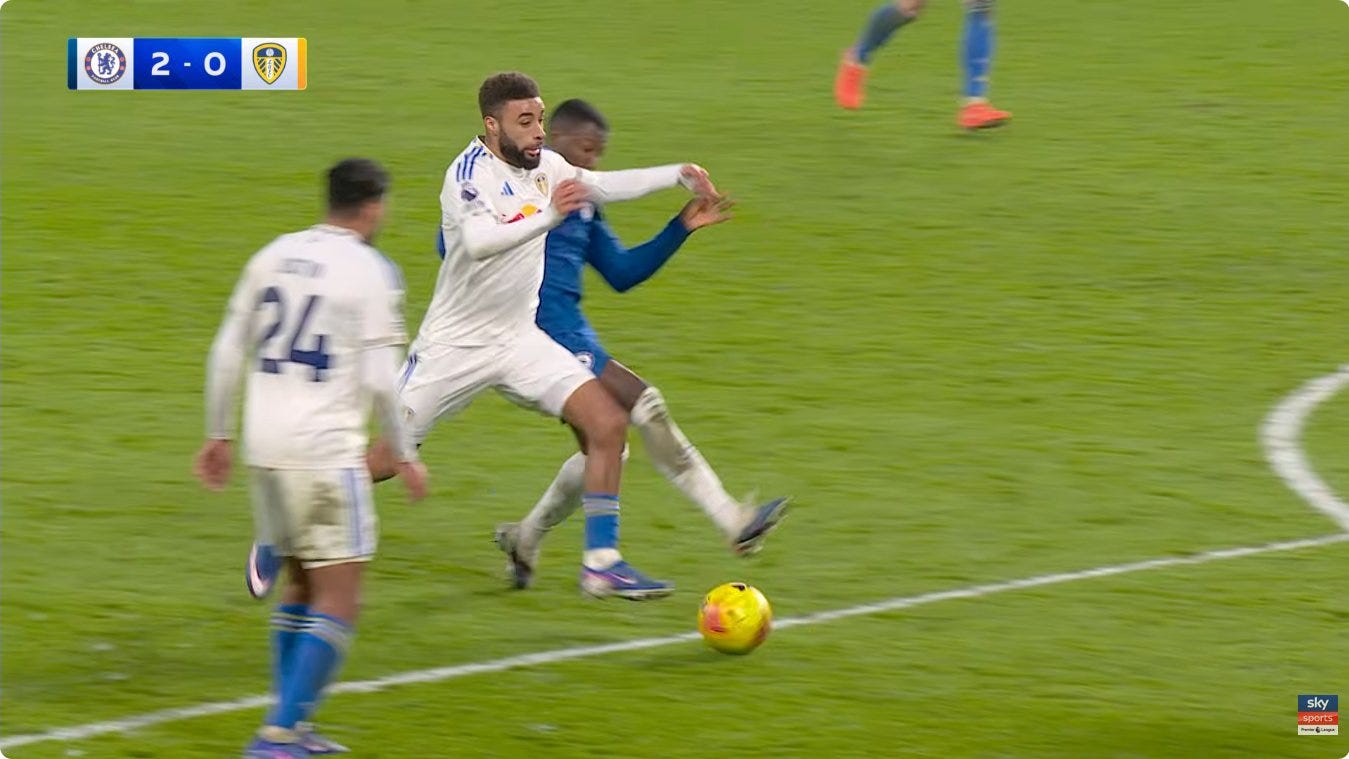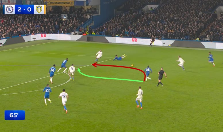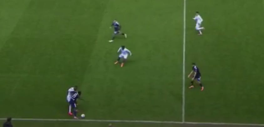 A minute later, Matondo peels out towards the right (as a left footer)