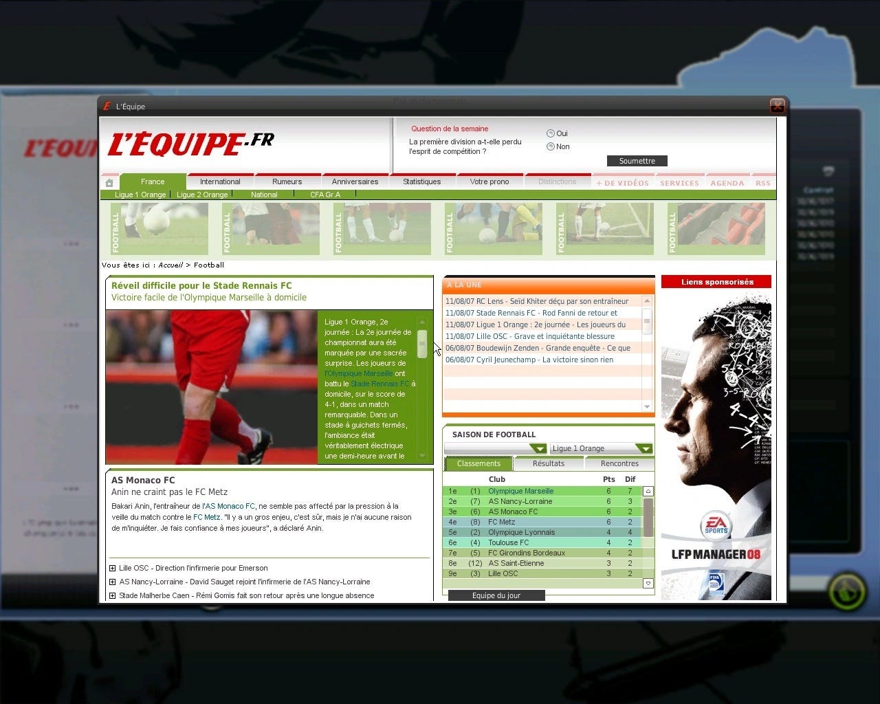 A mock L’Equipe website, identical to the real one back then