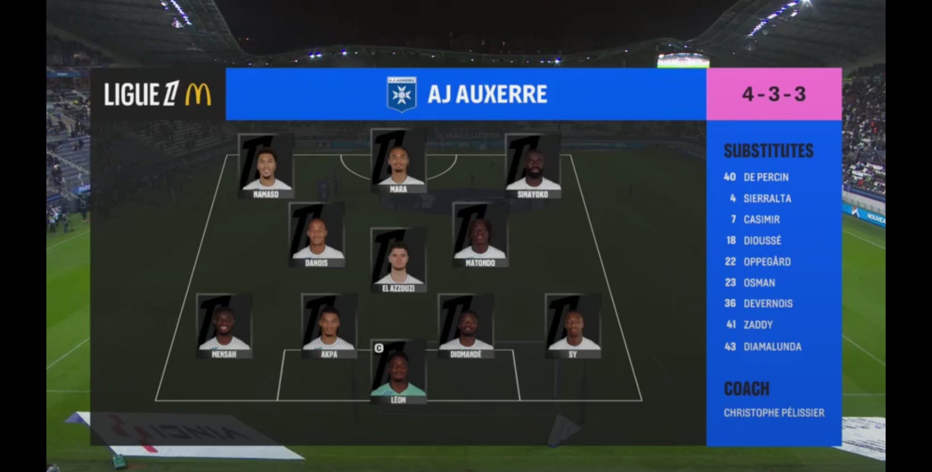 More like, as part of a 433 ; with Camara (6) base midfield, flanked with ASSE Bomb Squad captain Paul Eymard and Matondo