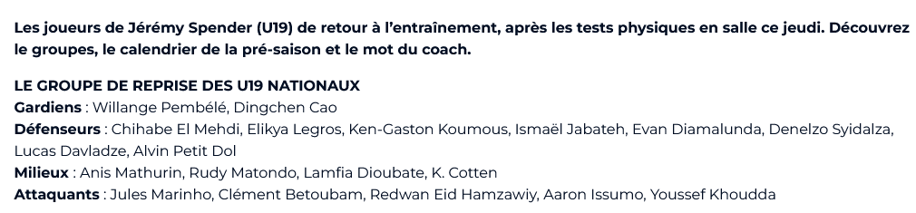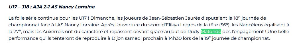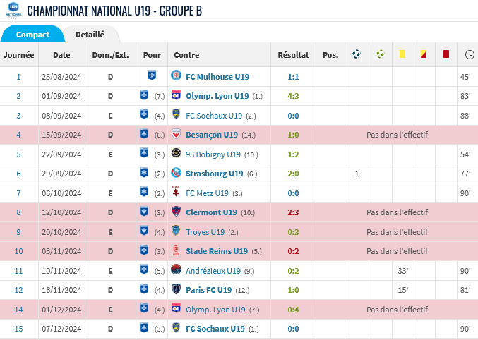Also, as it’s common practice ; the best prospects get a run out in the U18 Coupe Gambardella where scouts are in attendance.