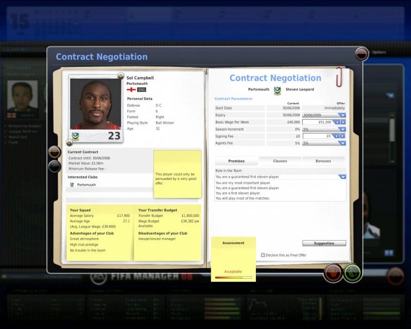 including these faux-realistic templates that kept me away from Football Manager for quite a bit : look at this, the shadows on the post-it, the paper clips, the aero design that would make interface upscale ; whilst the fabric (paper etc…) would make it real.
