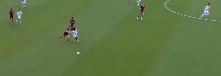 There’s a lot of instances of Matondo’s electric ball manipulation : quick feet, but also changing tempo over speed, with creative twists and turns.